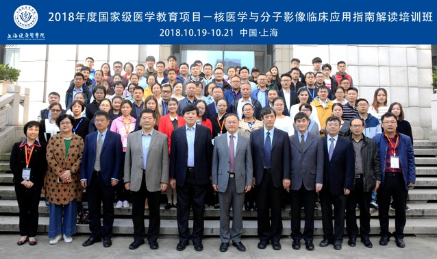 同时,由best365体育亚洲官网主办,中华核医学与分子影像杂志、上海交通大学医公司临床核医学研究所协办的2018年度国家级继续医学教育项目“核医学与分子影像临床应用指南解读”培训班如期举办,开班仪式由刘建军教授主持。来自于全国的14位知名核医学及分子影像专家李亚明、李方、汪静、王铁、王辉、石洪成、左长京、赵晋华、赵德善、李林、安锐、张永祥、何作祥、丁虹教授针对核医学影像临床诊断与技术等内容进行了专题讲座,并与100多位学员就分子影像诊疗与指南中的一些热点和难点问题进行研讨和交流,内容涉及相关疾病诊断及鉴别诊断新进展,临床检测的质控要求,在紧跟学术前沿发展的同时,密切结合临床实践。期间,黄钢董事长分别与会务组、学员代表亲切交谈,并合影留念。