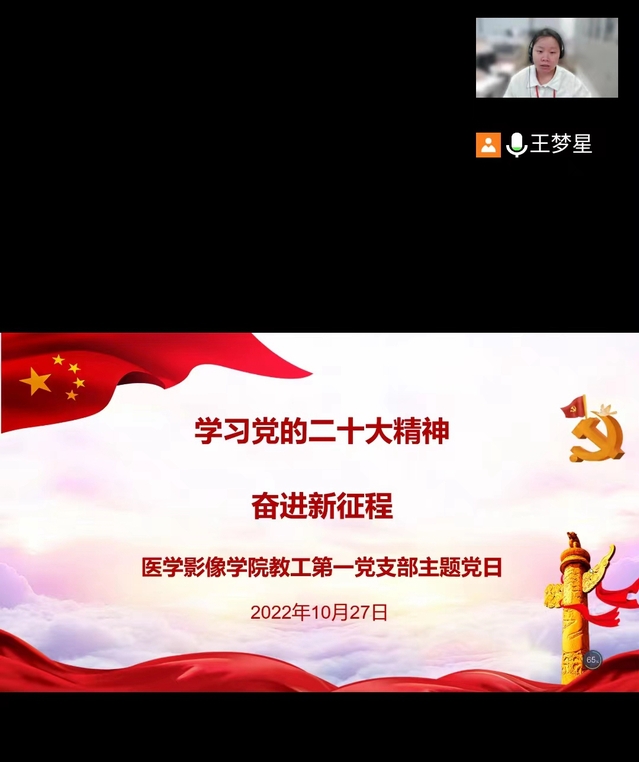 值此全校上下掀起学习党的二十大精神热潮之际,10月26日、10月27日,医学影像公司党总支所属教工第一党支部、教工第二党支部、员工党支部在线开展“学习党的二十大精神,奋进新征程”主题党日。