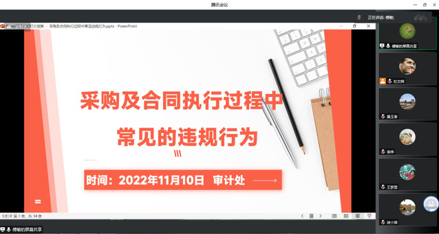 徐小萍经理首先强调了规范采购管理,规避采购风险的重要性,对审计处的指导表示感谢。随后傅敏老师就采购过程中的常见问题和实务进行了讲解,并着重介绍了在采购及合同执行过程中常见的违规行为,分别从七个常见的案例强调了采购过程中需要注意的风险点。然后参会教职工就相关方面与傅敏老师进行了讨论和交流。