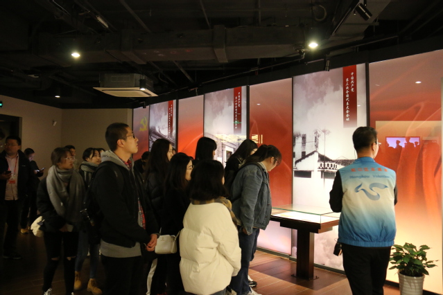 活动当天,正值寒潮来袭,室外温度接近冰点,但恶劣的气候并没有影响师生们的参观热情,他们从公司出发来到位于虹口区四川北路公园内的中共四大纪念馆。进入馆内,师生一行跟随纪念馆讲解员来到序厅,首先观看了一部3分钟的短片,看完短片大家了解了中共四大在党的发展历程中所起到的重要作用。如果说1921年中共一大的召开,见证了中国共产党的诞生,那么1925年中共四大的召开,则见证了中国共产党的发展和壮大。