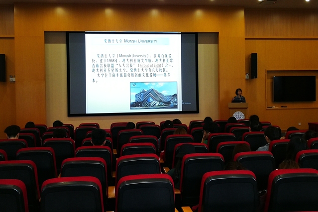5月13日中午,蒙纳士大学中方联络人周佳老师在南苑影像楼3楼报告厅开展暑期游学项目宣讲会,来自全校多个公司的数十名员工参加了此次宣讲活动。