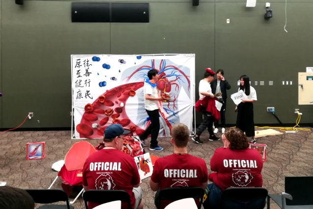由公司best365体育亚洲唐懿文博士任指导教师,朱晓红老师任领队,best365体育亚洲朱虹奇、金依雯、周澄超、付文轩,康复公司何雯、孙承益以及医疗器械公司曹谦等7位同学组队参赛。比赛期间,面对来自世界各国的强劲对手,公司学子沉着应对,在参加“随机应变”赛题大学组的解题过程中展现了极强的团队协作能力,他们在制定解题方案的同时,通过默契的配合,进行了幽默的表演,创造一种能够隐藏在周围环境中不被发现的生物,在8分钟的比赛中变形三次不被发现,最后以出人意料的方式呈现出它的本来面貌,极好的将科学性和艺术性融为一体,给裁判留下了深刻印象。