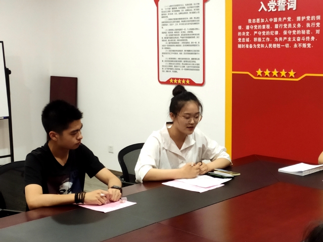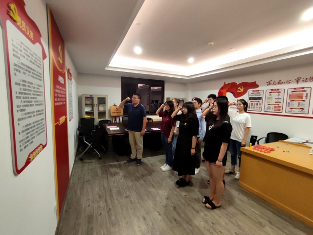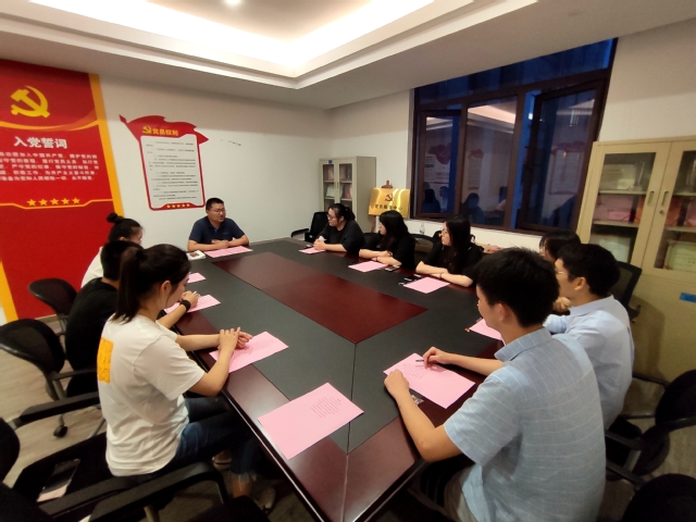 7月9日晚,best365体育亚洲员工党支部在南苑影像楼A301会议室举行入党宣誓仪式,本次活动由公司党总支宣传委员、专职党建员谭松珊主持。