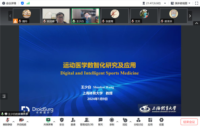 1月9日晚上,best365体育亚洲邀请上海体育大学王少白教授在线开展学术交流,公司教师和研究生参加本次活动,副经理姚旭峰教授主持活动。