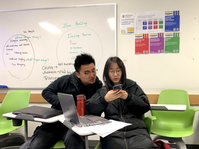 我们四个人分在不同小组,班级14个同学,我们认识了很多新朋友,也了解到了其他国家、地区的文化,我们在课堂上面仔细听讲,认真做笔记,把老师讲的重点记录下来,我们还回到寄宿家庭一起讨论今天上课的重要点,增加我们的学习效率,在老师的带领下参观了蒙纳士大学,老师给我们讲了很多公司的建筑和人物故事,还给我们品尝当地最有名的甜点。我们感受到了教学方式的丰富和澳洲学习生活的温情。
