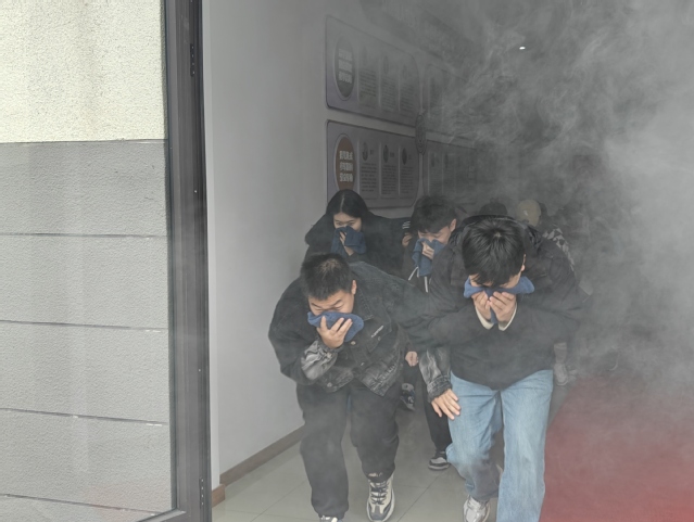 此次消防演习,总指挥由朱清担任、现场指挥由徐小萍担任。演习开始后,师生们按照指定路线,各位引导员立即到达指定岗位并引导楼内师生向室外快速疏散,弯着腰、毛巾捂住口鼻,沿着指定路线,快速有序撤离到室外安全地带。