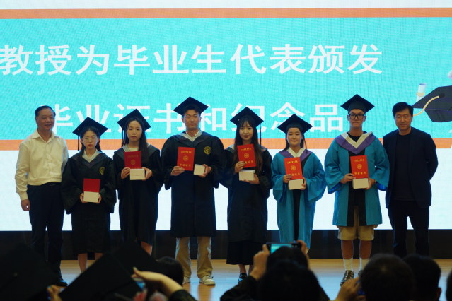 周进祝教授和李哲旭副教授共同为毕业生代表颁发毕业证书和纪念品。毕业生们从老专家、老教授手中接过的不仅仅是证书和祝福,更是无限期许,也象征着对老一辈永远谦虚、爱岗敬业、无私奉献精神的传承。
