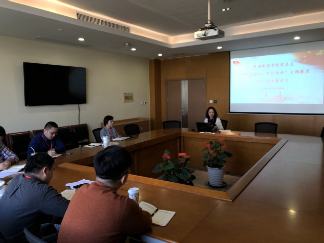 10月30日中午,医学影像公司党总支在南苑影像楼310会议室举行“不忘初心、牢记使命”主题教育中心组第六次学习研讨会,公司党总支书记刘红主持,党总支中心组成员参加学习研讨。