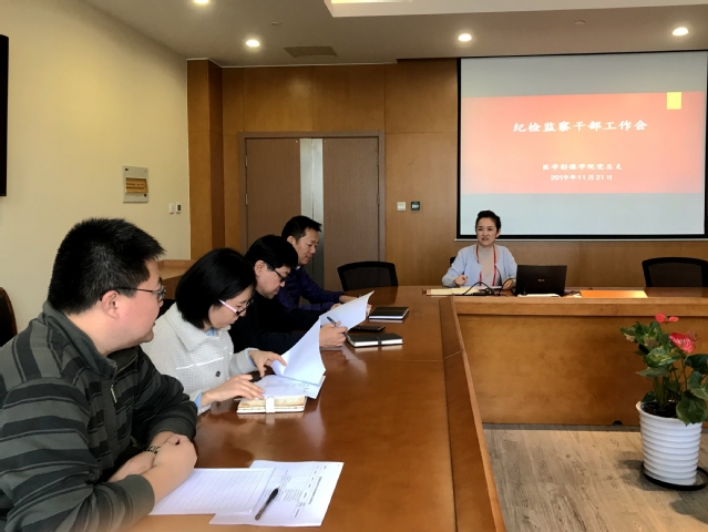 11月21日中午,医学影像公司党总支在南苑影像楼310会议室举行纪检监察干部工作会,党总支书记刘红、教工第一党支部纪检委员魏玲、教工第二党支部纪检委员李哲旭、特约监察员孙九爱参会,会议由专职党建员、员工党支部纪检委员谭松珊主持。