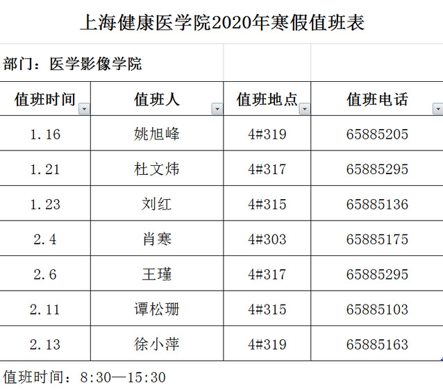 2020年寒假值班安排