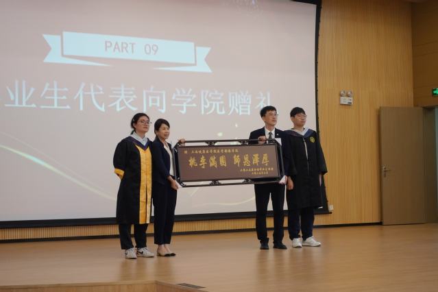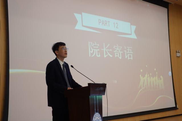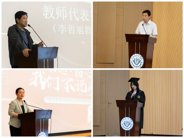 教师代表李哲旭和员工代表——上海市第六人民医院放射科技师长胡顺东先后发言。李哲旭回顾了与同学们相处的点滴时光,鼓励大家在未来的工作与学习中,保持对专业的热爱与执着、不断探索创新,为医学影像事业的发展贡献自己的力量。胡顺东分享了自己的职场经验,饱含深情为毕业生送上寄语,叮嘱大家要保持一颗工匠之心、仁爱之心和科研之心,在工作中有所作为。恩师的叮咛、员工的寄语化作无限前行的力量,激励着在场每一位同学。