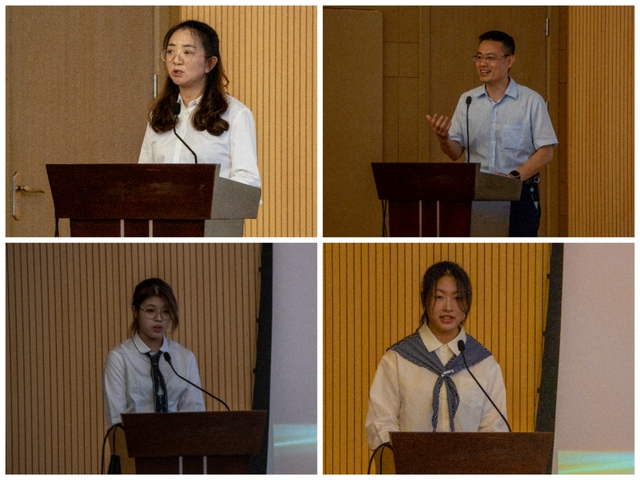 典礼伊始,师生共同唱响中华人民共和国国歌。随后,智能影像工程教研室专任教师陈珊珊、95级医用放射线设备专业毕业员工、现任上海西门子医疗器械有限公司亚太区教育服务中心教育培训经理白冈,先后寄语新生,鼓励大家应该努力把握来之不易的学习机会,勇敢追求自己的梦想,未来在大影像界做出各自的贡献。公司院训、院徽发布仪式将开学典礼推向高潮。公司党总支书记朱清宣读并展示院训院徽,向设计者颁发纪念品。朱清强调,院训、院徽体现并象征了“理性专业+温暖仁心”的公司气质和影像人精神内核,希望大家以院训院徽传递的精神为指引追求卓越、勇攀高峰。2023 级九院联合培养班崔朱玮同学作为院训院徽的设计者向新生介绍了她的设计理念和创作过程,饱含对公司和公司的深厚感情。2025 级智能影像工程2班叶文渊作为新生代表发言,自信昂扬、意气风发,她讲到:“我们将以‘察微见著’的态度钻研影像技术,以‘影鉴仁心’的信念守护生命健康,承担起新时代影像人的责任与使命,做一名优秀的基层卫生健康的守护者。”