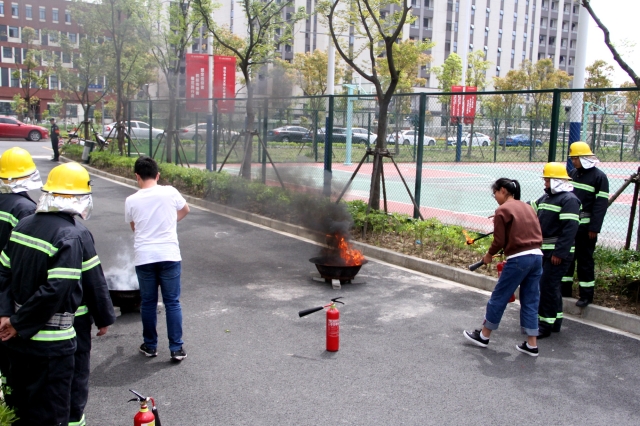 在演习过程中,同学们按照统一指令,在主持人宣布演习开始后,各位引导员立即到达指定岗位并引导楼内员工快速疏散,同学们弯着腰、毛巾捂住口鼻,沿着指定楼梯口,快速有序撤离到大楼下的安全地带。随后,保卫处人员教授同学们正确使用消防器材的方法,让员工们亲自使用灭火器。活动最后,公司党总支书记蒋晓明对本次活动进行总结,他强调了消防安全工作的重要性,并提出希望借助此次演习,增强同学们的消防安全经验,杜绝火灾隐患,树立起以“安全”为主的防灾意识,为营造和谐校园奠定坚实基础。