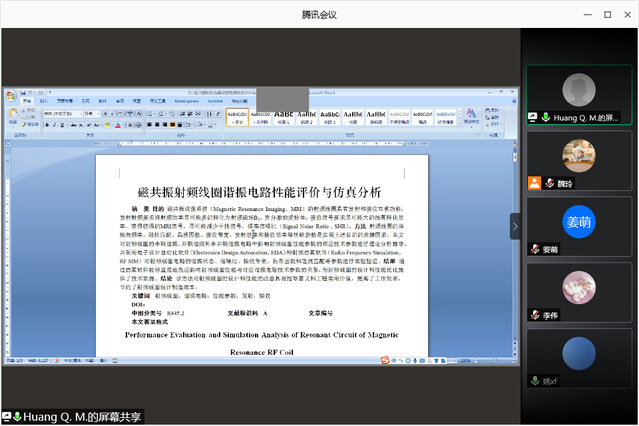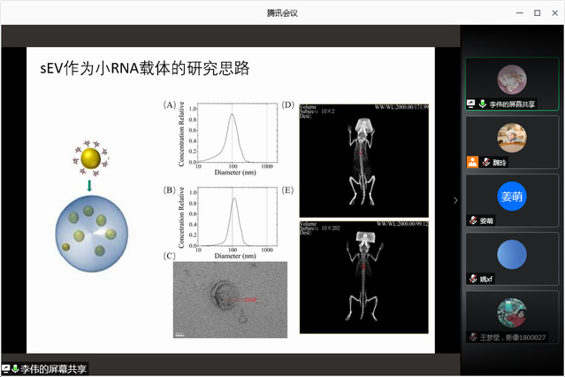 会上,医学影像技术教研室副主任李伟作了题为《sEV作为小RNA载体的研究》的学术报告,报告包含了研究选题、研究思路设计、目前研究成果等内容。随后,黄清明博士向与会人员分享了自己在磁共振射频线圈谐振电路性能评价方面的研究成果,思路清晰、重点突出。