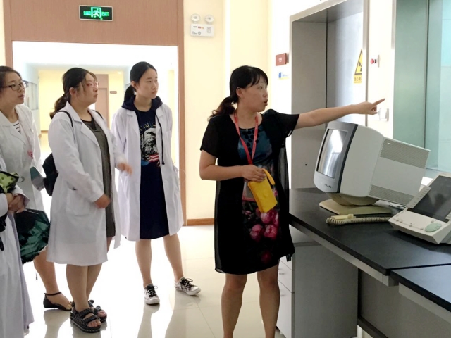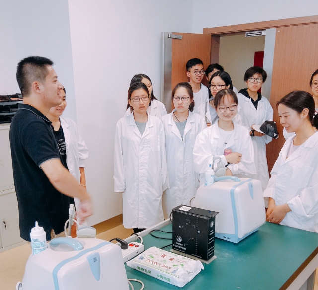 活动当天,两个本科班分为四组对影像楼进行参观,对于尚未深入接触专业知识的16级员工来说,进入影像楼的那一刻,便如同进入了医学影像学知识的海洋,同学们在参观大楼的同时,能够通过精美的走廊文化了解医学影像学的发展历程。在西门子大厅,同学们参观了虚拟DR实训室、MRI设备实训室和CT实训室。在二楼参观了高频X线机实训室、CBCT 实训室、数字乳腺摄影实训室和CR 实训室。在四楼参观了超声设备实验室和磁共振成像技术实验室。在参观过程中,公司实训中心教师全程陪同进行讲解,重点解答同学们对专业的疑惑,鼓励他们及早定位、设定目标,努力学习专业技能。