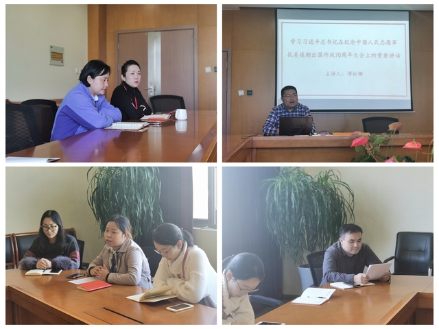 10月30日下午,医学影像公司党总支在南苑仁影楼310会议室举行中心组学习,本次学习由党总支书记刘红主持,中心组成员集中学习习近平总书记在纪念中国人民志愿军抗美援朝出国作战70周年大会上的重要讲话。