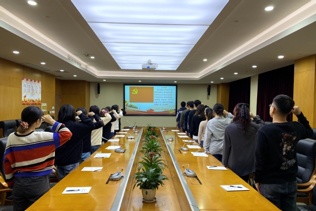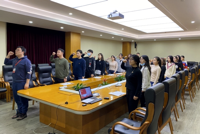 1月4日晚上,best365体育亚洲员工党支部在南苑仁影楼306会议室举行新党员入党宣誓仪式,本次活动由支部纪检委员谭松珊主持,支部书记孙佳鸣、2020年第四季度入党的预备党员参加宣誓仪式。