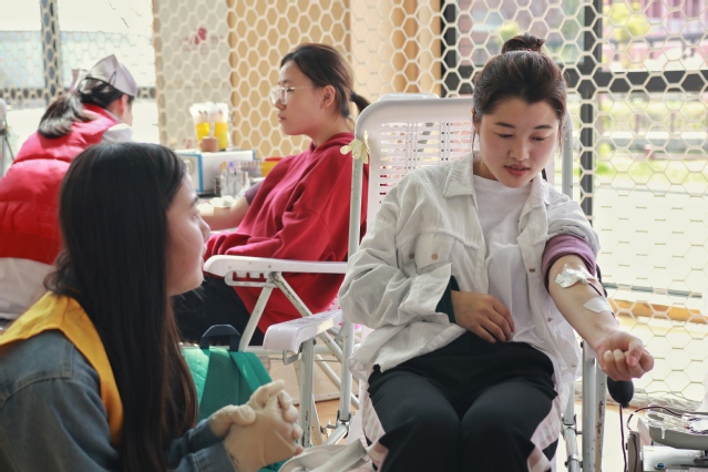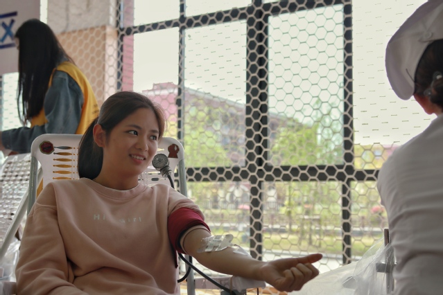 活动现场共分为登记区、体检区、献血区、休息区、领证区五大区域,现场除了来自校志愿者服务队和校红十字会的同学们之外,公司志愿者也积极参与服务,帮助一起维持秩序,照顾献血同学,大家在各自岗位上为献血工作做着贡献。参加献血的同学们按照规定时间准时候场,文明谦让、井然有序。在献血区,有的同学已经是多次献血了,所以表情从容;但是大一的很多同学都还是第一次参加无偿献血,看起来稍微有些紧张,但是依旧面带微笑,勇敢的卷起袖管。献过血的同学来到休息区,一边休息补充能量,一边相互谈笑,窗户斜射进来的午后阳光照耀着一张张朝气蓬勃的脸庞,格外健康与美丽。