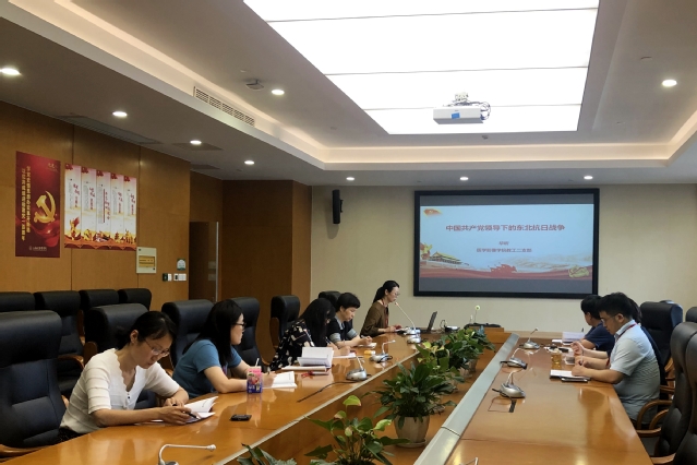 教工第二党支部书记毕昕作题为“中国共产党领导下的东北抗日联军及其斗争精神”的专题党课,她首先对“八年抗战”和“十四年抗战”两个名词进行了解读。随后,她讲述了中国共产党领导的东北抗日联军及其前身东北反日游击队、东北人民革命军,在日本侵略者的大后方,浴血奋战、艰苦斗争,涌现了杨靖宇、赵尚志、赵一曼、冷云等一批抗日英烈,用生命书写了中华儿女为民族解放运动不屈斗争的篇章。中国共产党人这种可歌可泣、英勇无畏的伟大爱国情怀,犹如一面永远不倒的旗帜,在日伪长达14年的黑暗统治下,激励着东北人民不断战斗,直至抗日战争的最终胜利。