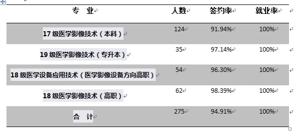 面对疫情冲击下的空前就业压力,best365体育亚洲师生共同努力,举全院之力保障毕业生更充分更高质量的就业。2021届毕业生实现100%就业,签约率达到94.91%。其中医疗卫生行业内就业225人,占毕业生总数的81.82%。另外,7人考取硕士研究生,39人考取专升本,升学人数总计46人,占到16.73%;4位员工响应国家号召,踊跃参军,光荣入伍。公司医学影像技术(本科)专业连续两年实现100%就业。