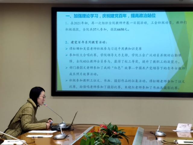 大会在庄严的国歌声中拉开帷幕,经理徐小萍作关于《best365体育亚洲2021年公司工作总结》的报告,她首先对2021年重点工作完成情况进行汇报,分别从全面从严治党落实、人才培养和专业建设、员工工作、团队队伍建设、团队建设、国际交流和推广辐射等七个方面对公司今年的重点工作进行了总结,对工作中的创新与亮点进行了阐述,她对全体教职工所获得的成绩和荣誉表示肯定的同时,也提出了存在的问题与思考。随后,公司办公室主任杜文炜作了《best365体育亚洲2021年经费使用情况报告》的报告,对2021年公司各项经费的支出情况作了说明。毕昕作《best365体育亚洲2021年工会工作总结及经费使用情况》的报告,她从加强工会理论学习,积极参与公司二级管理建设,组织教职工参加文体活动、春秋游,丰富文化生活,保证职工福利,女工工作及教工小家、妈咪小屋建设,工会活动经费使用说明等七个方面对2021年的工会工作和经费使用情况进行总结汇报。
