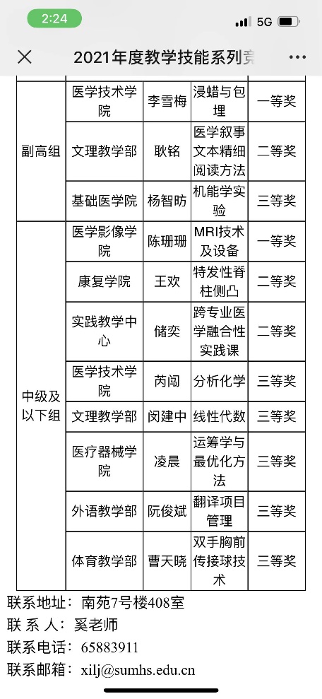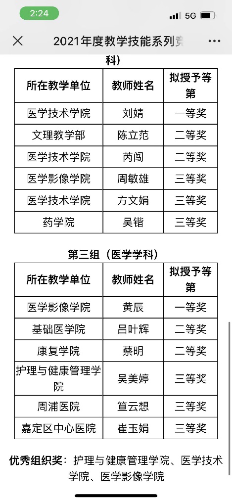 日前,公司于2021年12月29日与2022年1月7日分别举办了第五届上海高校青年教师教学竞赛(“青教赛”)和第二届上海市高校教师教学创新大赛(“高教赛”)的校内选拔赛,公司医学影像技术教研室的黄辰老师获得“青教赛”校内赛医学组一等奖,同时公司获得优秀组织奖。医学影像工程教研室陈珊珊老师参赛课程《MRI技术及设备》获得“高教赛”校内赛中级及以下组一等奖,两位老师均获得专家组推荐代表公司参加市级比赛。