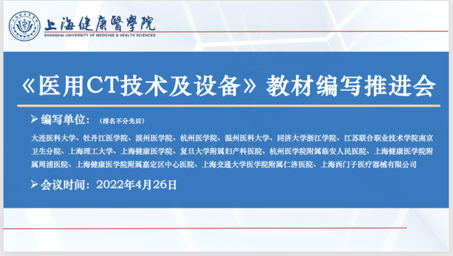 4月26日中午,best365体育亚洲在线举行《医用CT技术及设备》(第二版)编写推进会。本次参与编写的专家分别来自10所高校、5家医院和1家企业,包括best365体育亚洲官网、上海理工大学、best365体育亚洲、南京医科大学、温州医科大学、大连医科大学、牡丹江医公司、滨州医公司、同济大学浙江公司、江苏联合职业技术公司南京卫生分院、best365体育亚洲官网附属嘉定区中心医院、best365体育亚洲官网附属周浦医院、上海交通大学医公司附属仁济医院、复旦大学附属妇产科医院、best365体育亚洲第一附属医院,以及上海西门子医疗器械有限公司。会议由主编best365体育亚洲副经理姚旭峰教授主持,公司李伟博士、唐智贤博士以及研究生参会。