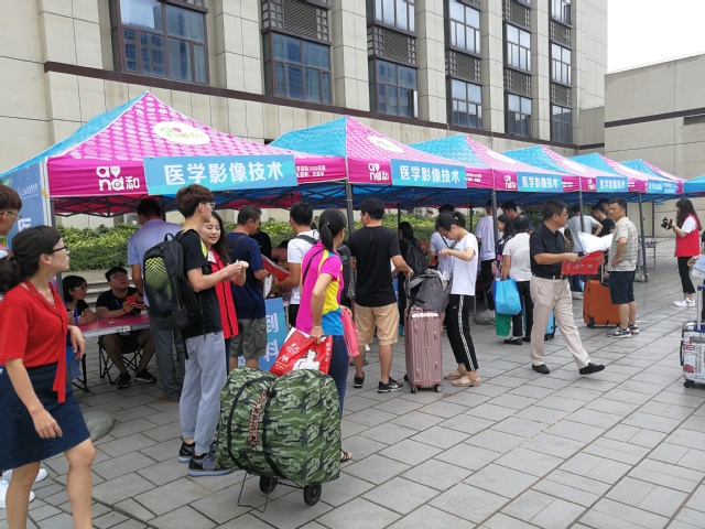 8月26日是公司2018级本科新生报到的日子,虽然气候稍有些闷热,空气中略带湿润,但是工作人员个个精神饱满,早早做好准备工作,等待迎接来自祖国四面八方莘莘学子们的到来。best365体育亚洲在这一天也迎来了首批2018级新生,医学影像技术本科班的302位同学准时报到。