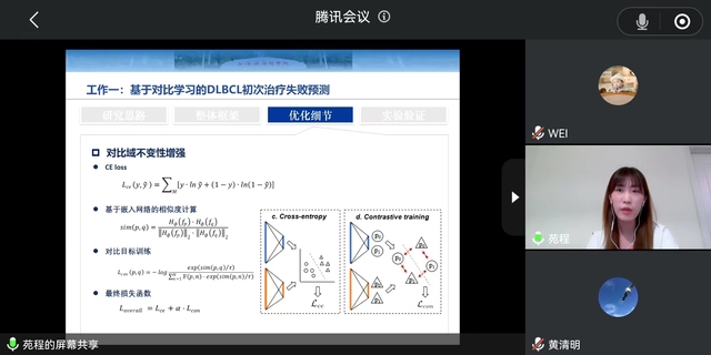 本次沙龙由潘宇新博士和苑程博士进行主讲,潘宇新博士以《Ho3+离子掺杂激光材料的制备及2μm中红外波段光谱研究》为题进行分享,该研究采用SPS制备了Yb,Ho:Y2O3透明陶瓷,并采用高温固相烧结在氧气气氛下制备了Yb,Ho,Ce:YAG透明陶瓷,有效提高了2μm发光。该技术可以应用于医疗检测和激光治疗领域,帮助提高激光手术的穿透深度和手术精度,有很强的临床应用价值。苑程博士则以《基于多模态学习的PET/CT图像中弥漫大B细胞淋巴瘤分类算法研究》为题进行分享,该研究关注于弥漫大B细胞淋巴瘤的临床辅助诊疗,提出了一种基于对比域不变性增强的分类模型,并验证了中期PET/CT在初次治疗失败中的预测价值;同时提出了可解释的多任务注意力学习网络,并实现了肿瘤免疫分型识别,可推广至临床使用。在讨论环节,与会人员积极交流发言,气氛热烈。
